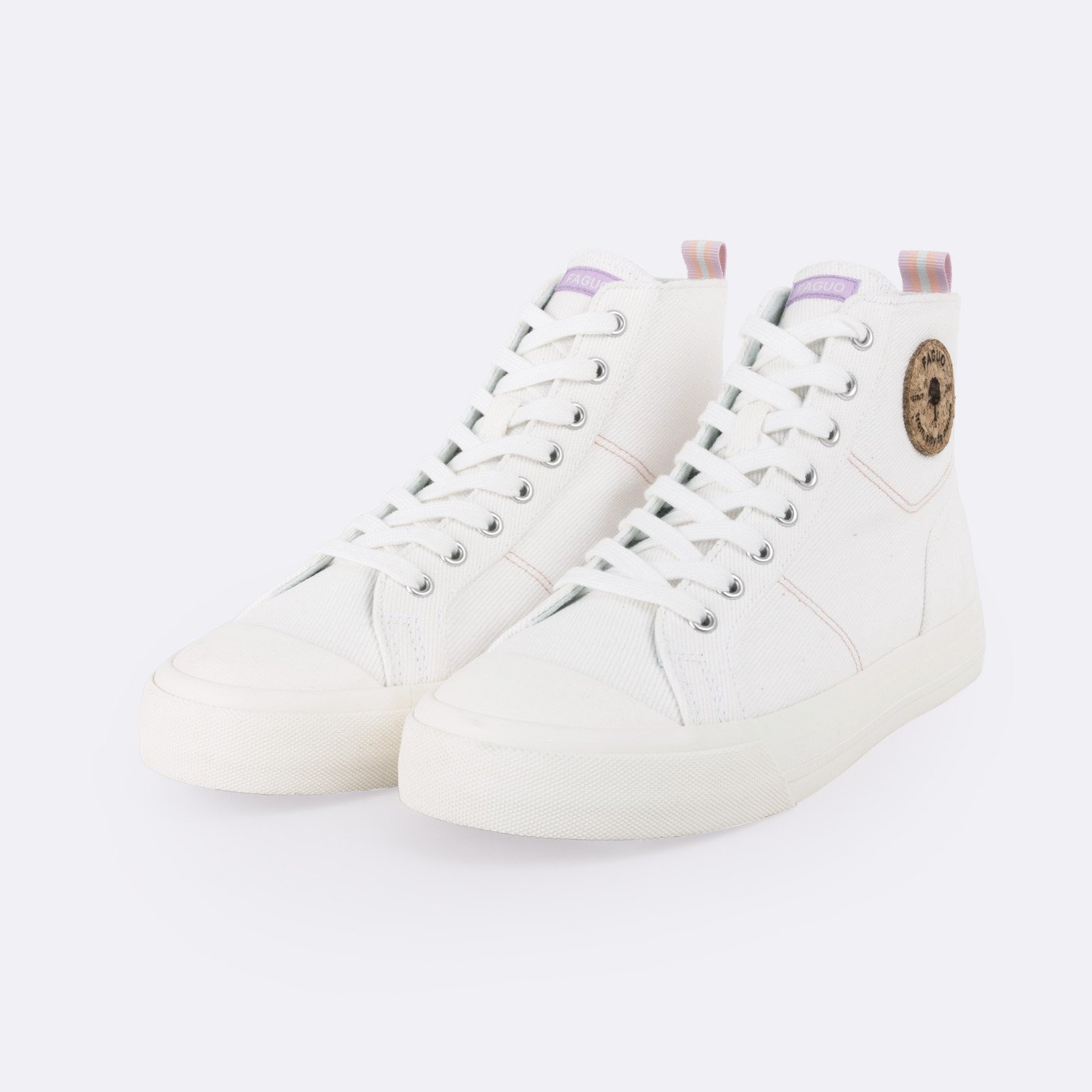 NUTMEG bela je visoka platnena tenisica. Vremenski neizostavna, ističe se zahvaljujući detalju od kore drveta. Ova tenisica je osnovni deo garderobera za cool, retro stil.