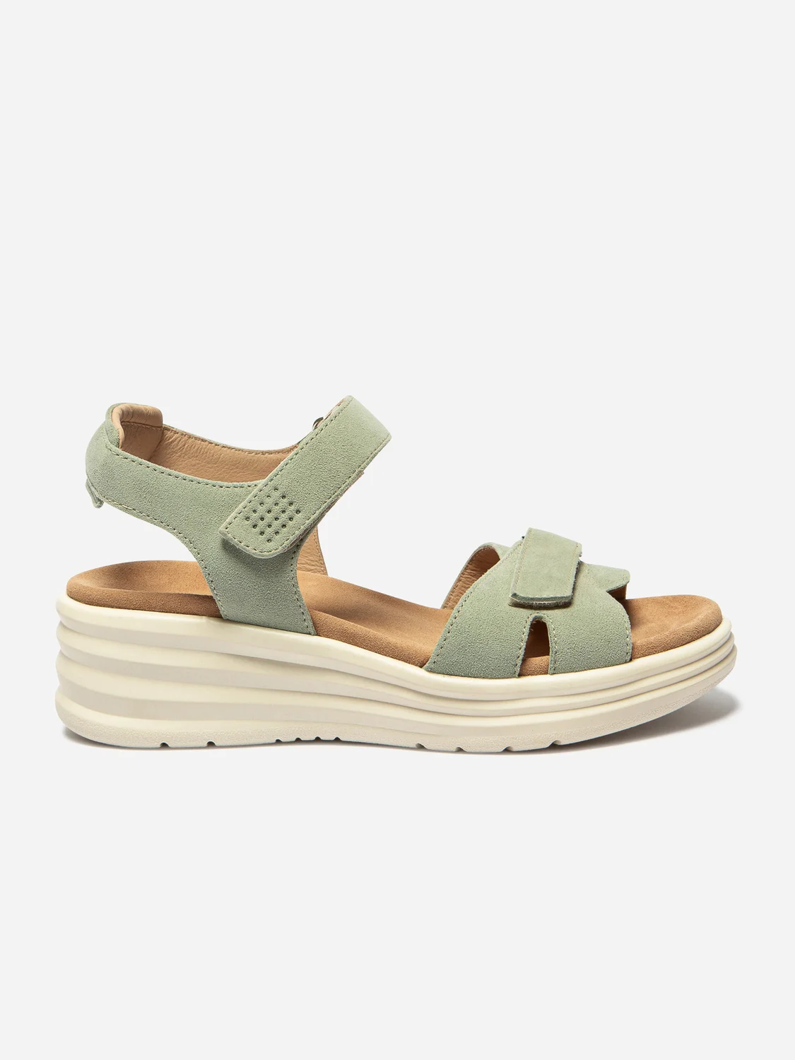 Ove ženske sandale na platformu izrađene su od brušene kože i pružaju kombinaciju elegancije i udobnosti za letnje dane. Imaju praktično čičak kopčanje koje omogućava lako obuvanje i dobro prilagođavanje stopalu. Visina pete je 50 mm, a konstrukcija je lepljena, što im daje stabilnost. Gornji deo, postava i tabanica izrađeni su od kože, dok je đon od sintetičkog materijala. Koža korišćena u izradi sertifikovana je od strane Leather Working Group, što potvrđuje viši standard proizvodnje i održivosti.