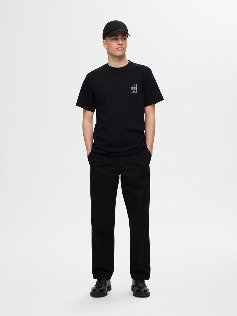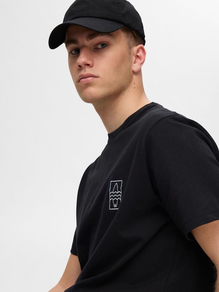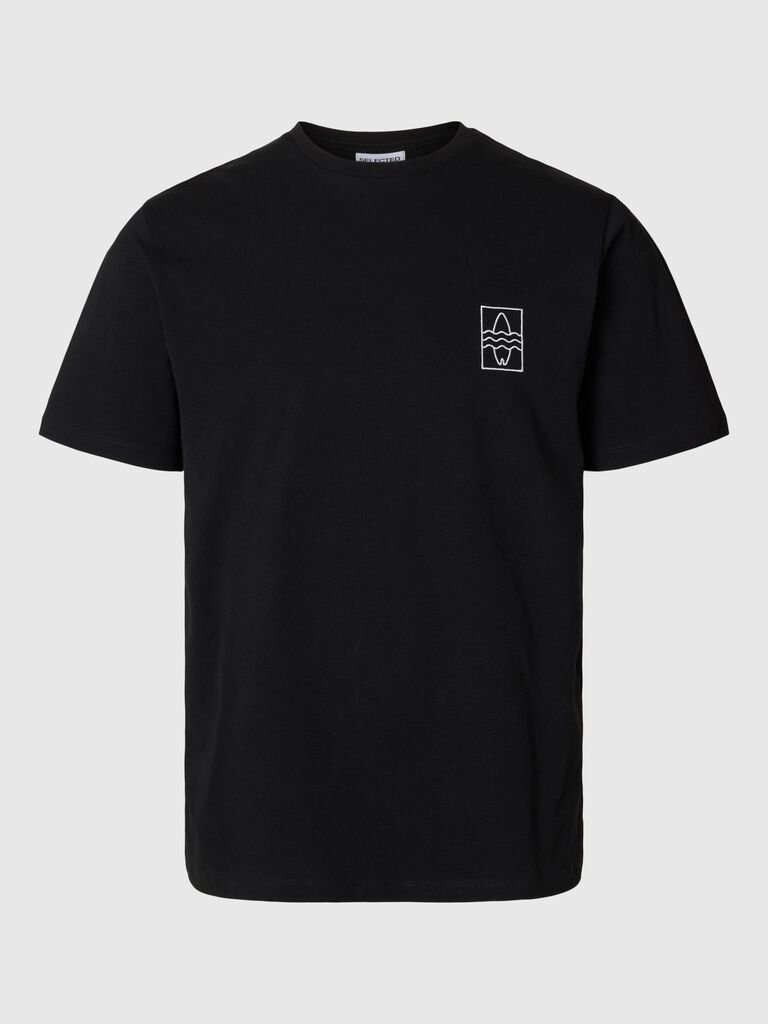 SELECTED m.majica Slhreg-ripley ss emb tee Black EMB SURF 68082