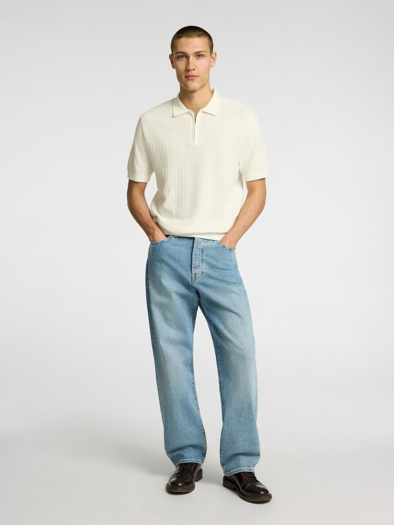 SELECTED m.polo majica Slhcran ss knit structure Egret 68095
