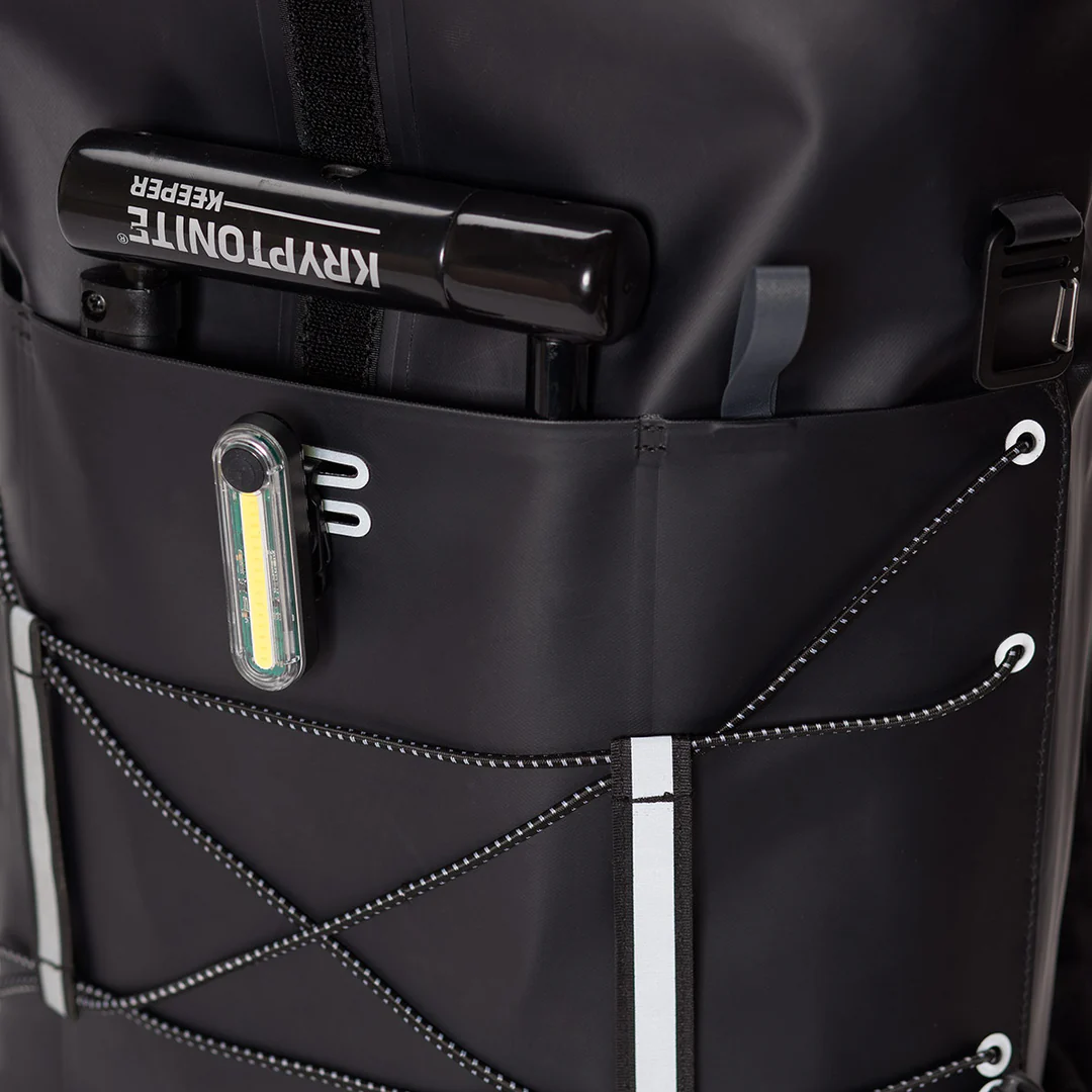 Koristi se izdržljiv i mat Tarpaulin materijal koji odoleva svim vremenskim prilikama tokom svakodnevnog putovanja. Za razliku od standardno šivenih proizvoda, Commute serija je ekstremno vodootporna zahvaljujući korišćenju tehnike visokofrekventnog zavarivanja. Svaki komad je dizajniran da opremi urbanog biciklistu za ultimativni teren — grad.